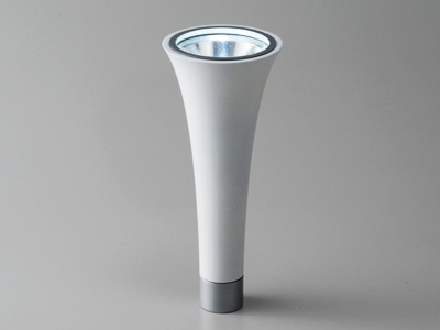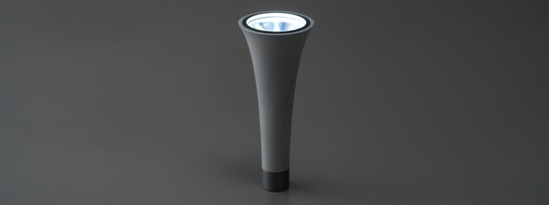 正規分布の曲線ハンドライト 数式から得られる曲面をメタファーとしてデザインされたミニマルなハンドライトです。光源は高輝度LEDを利用し高輝度でありながらスタイリッシュな形状を演出しています。インテリアとしても存在感があり緊急時でもアイコンとして認識することで素早い対応ができることでしょう。隠すのではなく見せるこのハンドライトは今までの常識を覆すものであります。